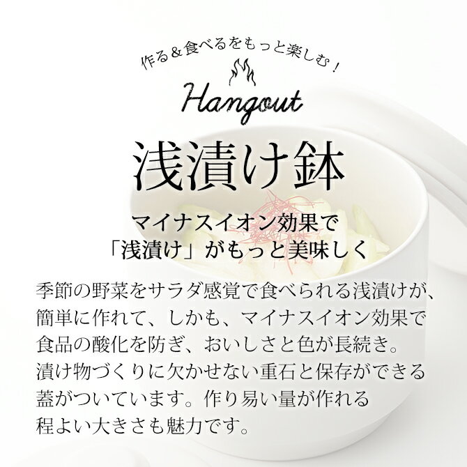 商品名:Hangout 浅漬け鉢 旬なキーワード:保存容器 保存 食器 器 鉢 浅漬け 漬物 重石 皿 陶器 マイナスイオン ハングアウト 日本製 つけもの 浅漬 マイナス イオン 酸化防止 容器 おしゃれ 保存容器 シンプル お洒落 ホワイト 白い モダン 減塩 新生活 キッチン雑貨 おしゃれ雑貨 自然派 hangout bottle ハング アウト SNS映え インスタ映え SNS 人気 おしゃれ かわいい シンプル レディース 母の日 女子 女性 女の子 ギフト プレゼント 贈り物 お祝い 誕生日プレゼント プチギフト オシャレ お洒落 可愛い