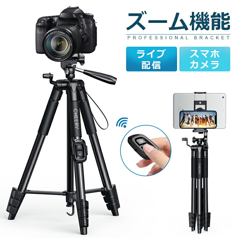 P10倍【3WAY雲台&リモコン付き】 楽天1位 三脚 スマホ ビデオカメラ カメラ三脚 軽量 5段階伸縮 360度回転 3WAY雲台 撮影 カメラ ライブ配信 一眼レフ 自撮り 三脚スタンド スマホ三脚 リモコン付 Bluetooth5.0 伸縮式 折り畳み 多機能 iPhone Android タブレット ギフト