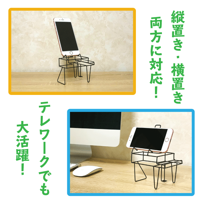 自社工房で1つ1つ製作している、こだわりのスマホスタンドは、テレワークでも大活躍! インテリアとしてお部屋に置いておくだけでも、スタイリッシュな空間を演出できます。