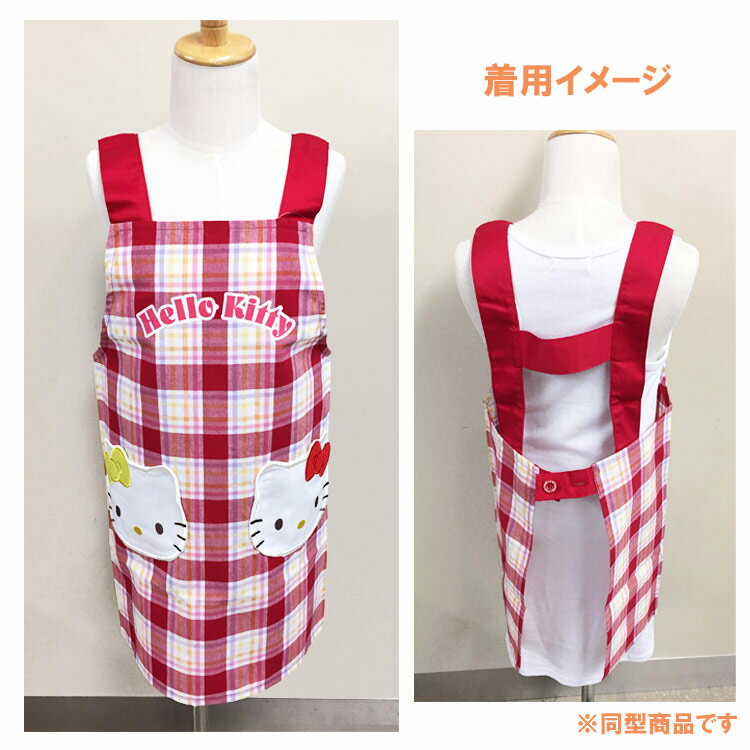 ハローキティ グッズ 子供エプロン プリントポケットH型 パープル 110cm 030566