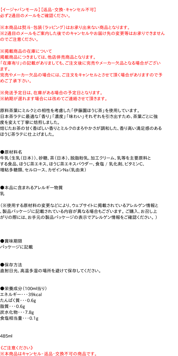伊藤園 タリーズほうじ茶ラテ485mlペット【イージャパンモール】