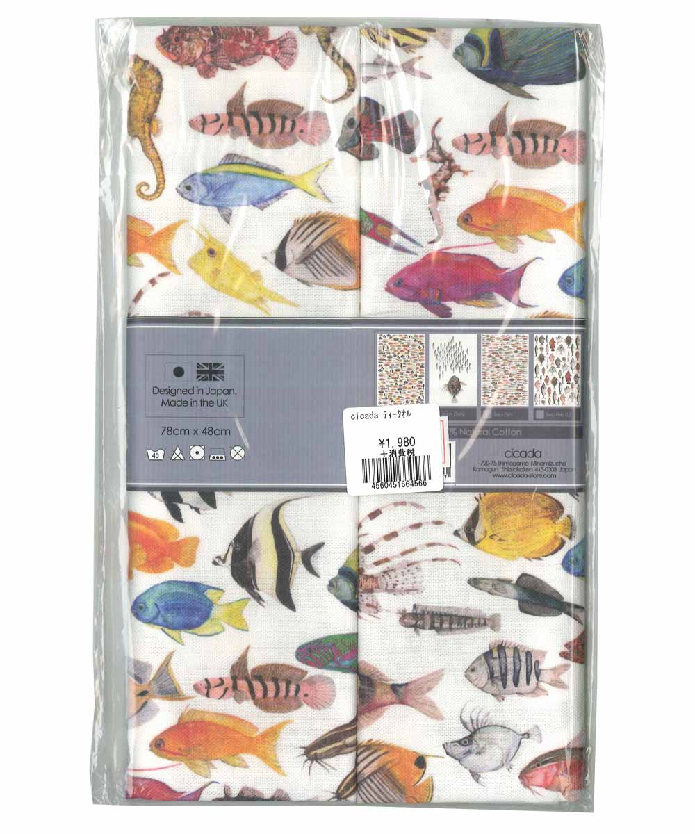 【1日はエントリーで店内P7倍!クーポン有】 cicada ティータオル 手ぬぐい 魚 テーブルクロス Russel Wills キッチン お土産 伊豆 静岡 ティータイム コーヒータイム ふきん おしゃれ タツノオトシゴ クマノミ カサゴ 綿 ハコフグ ナンヨウハギ ギフト プレゼント