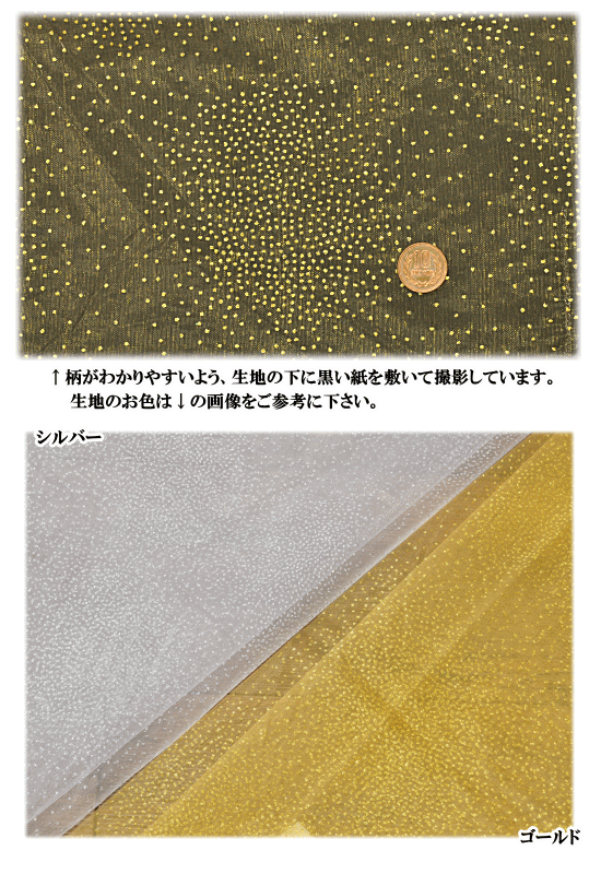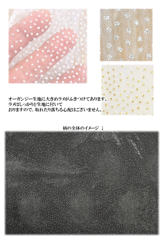130cm幅 ラメ入り オーガンジー生地 ドット 《 幅広 衣装 生地 布 ダンス 衣装生地 ゴールド シルバー 》