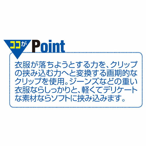 衣服が落ちようとする力を、クリップの挟み込む力へと変換する画期的なクリップを使用。