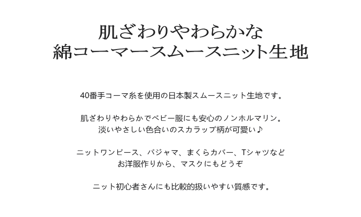 日本製 生地 ニット やわらかコーマスムースニット“スカラップ柄” ☆