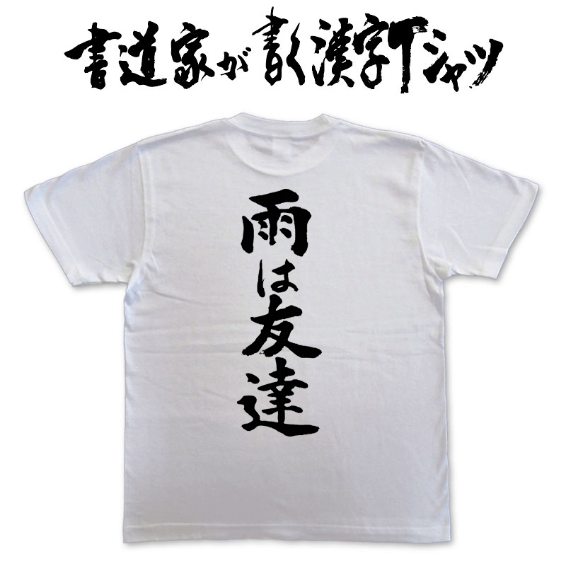 雨は友達 (縦書) 書道家が書く漢字Tシャツ T-timeオリジナル おもしろTシャツ プリントTシャツ カスタムオーダーメイド可能な筆文字Tシャツ メンズ レディース 子供服 大きいサイズ 4L 5L もあります ドライTシャツ も選べます メール便送料無料